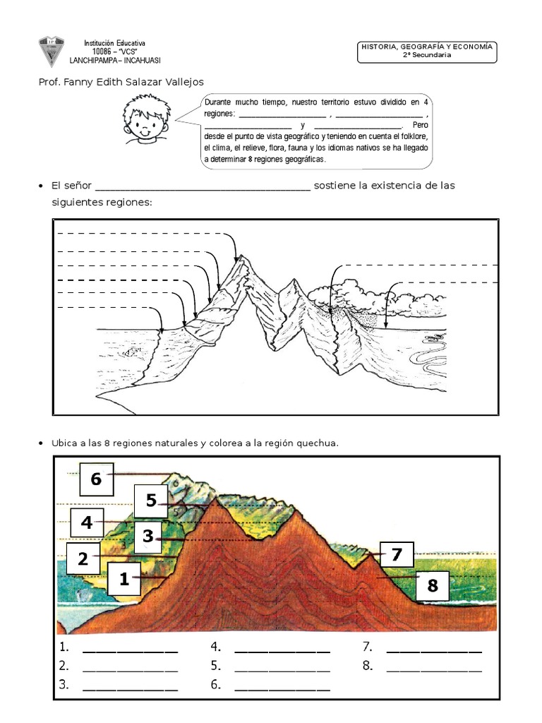 Ubica a las 8 regiones naturales y colorea a la región quechua.
