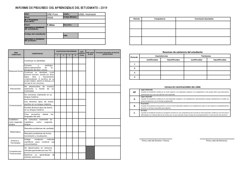 INFORME DE PROGRESO DEL APRENDIZAJE DEL ESTUDIANTE – 2019