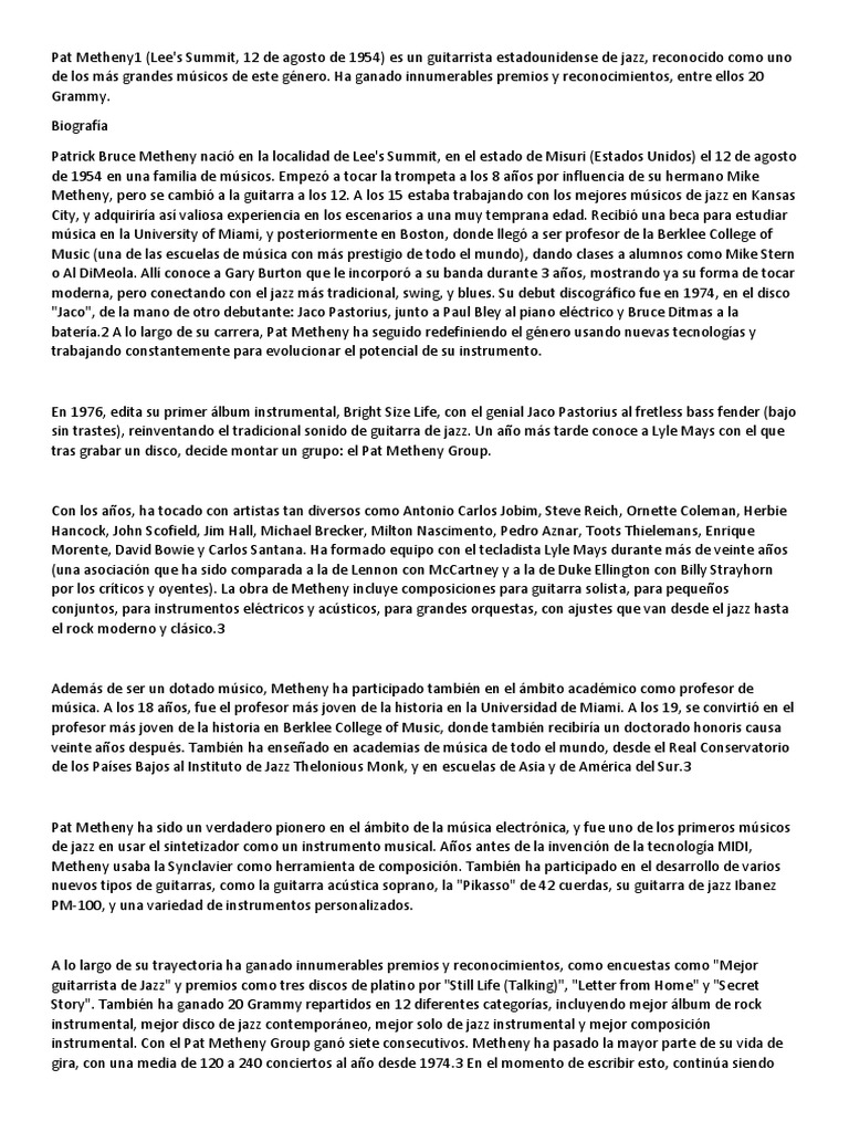 por los críticos y oyentes). La obra de Metheny incluye composiciones para guitarra solista, para pequeños