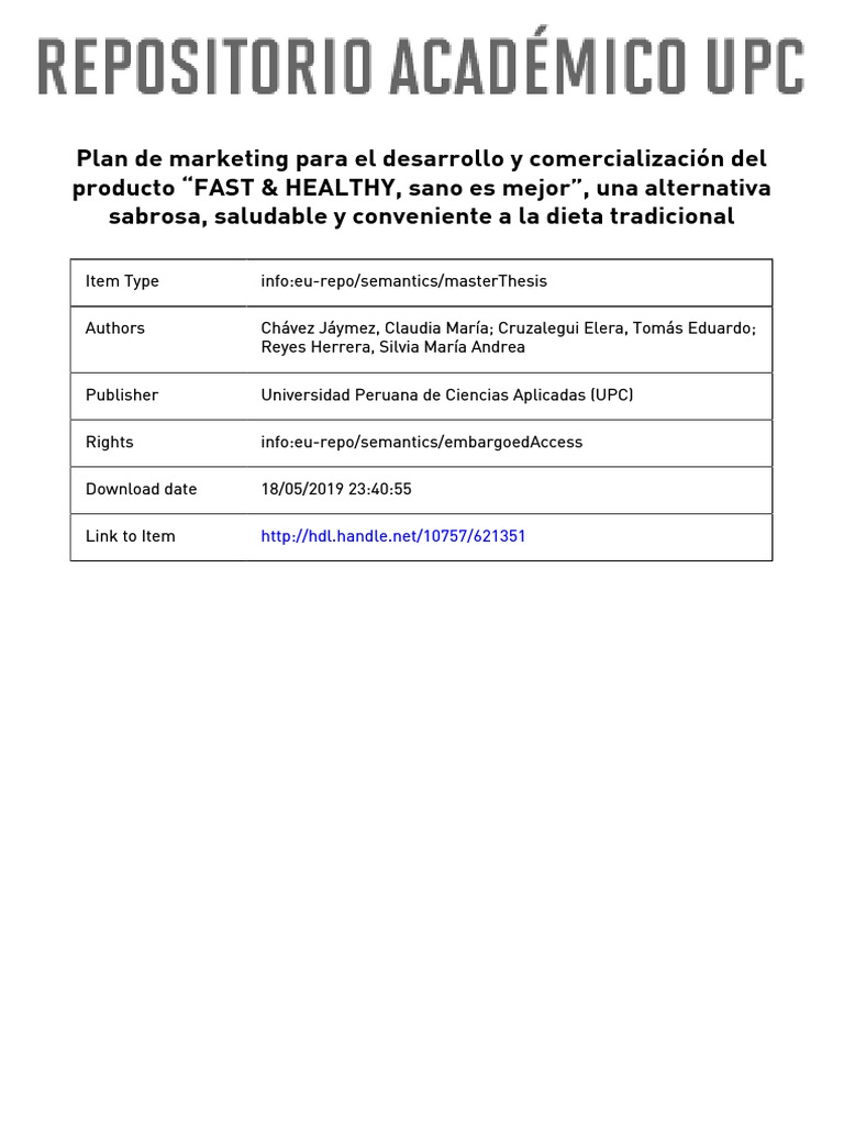 Plan de Marketing para el desarrollo y comercialización del producto “FAST & HEALTHY,