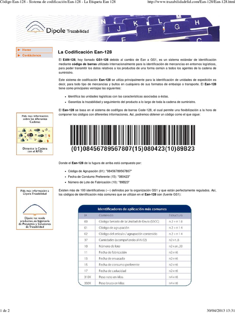 Código Ean-128 - Sistema de codificación Ean-128 - La Etiqueta Ean 128 http://www.trazabilidadrfid.com/Ean-128/Ean-128.