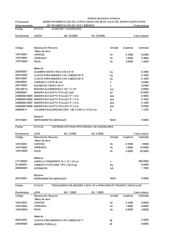 Análisis de Precios Unitarios en Pavimentación