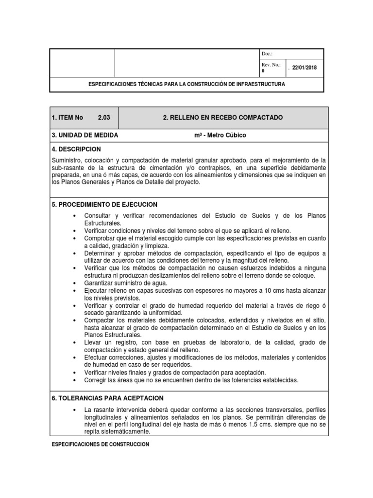 1. ITEM No 2.03 2. RELLENO EN RECEBO COMPACTADO