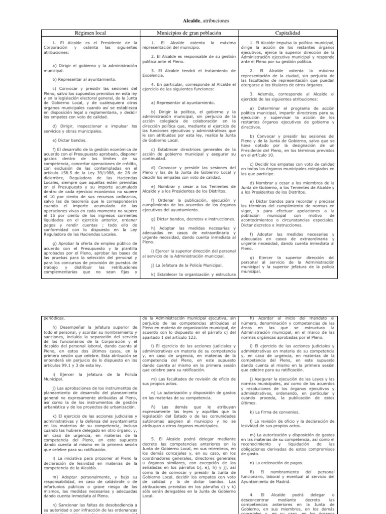 Alcalde, atribuciones