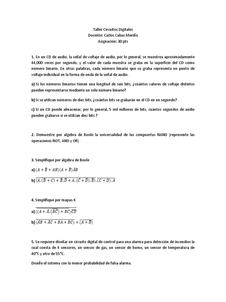 2. Demuestre por algebra de Boole la universalidad de las compuertas NAND (represente las