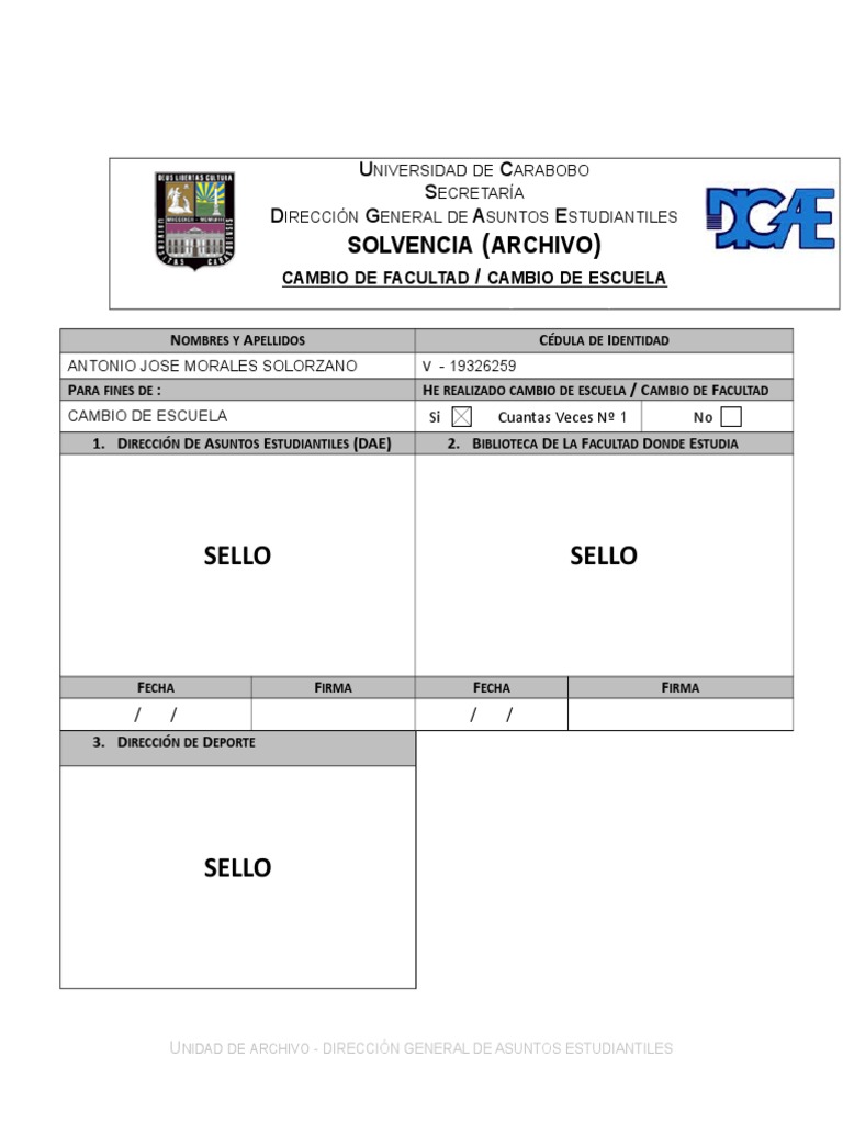 de Carabobo (conocido como el DOMO). Para obtener esta solvencia, debe dirigirse