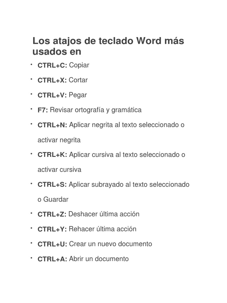 CTRL+ SHIFT+U: Cambiar las letras a mayúsculas