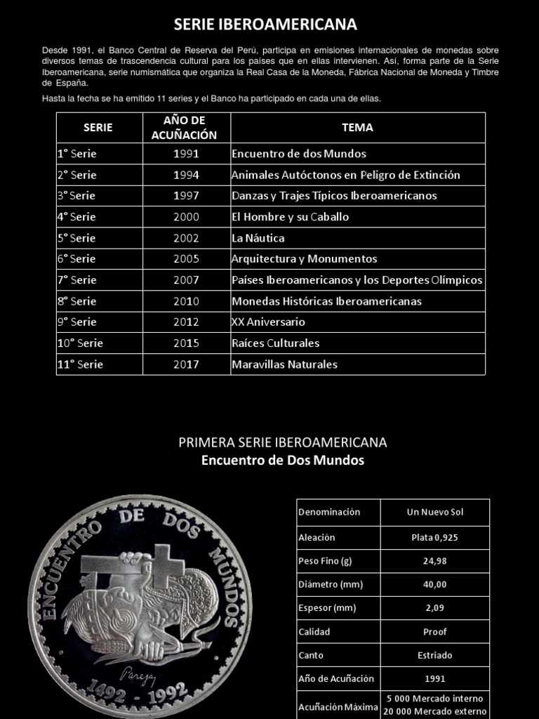Desde 1991, el Banco Central de Reserva del Perú, participa en emisiones internacionales de monedas sobre