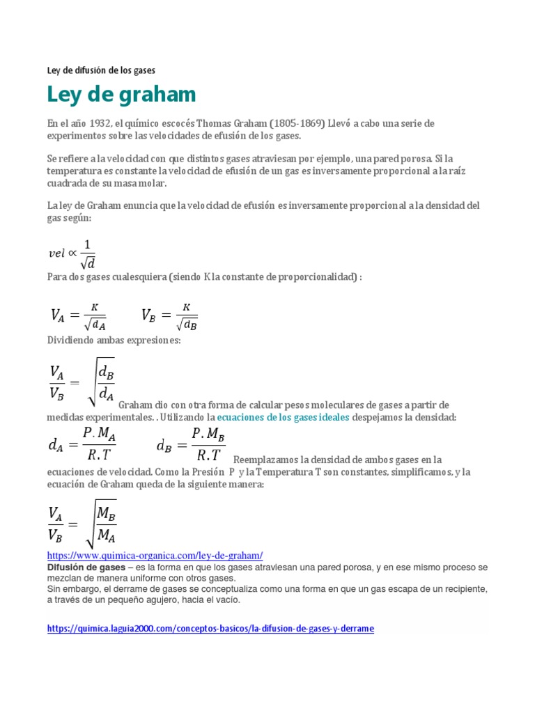 Graham dio con otra forma de calcular pesos moleculares de gases a partir de