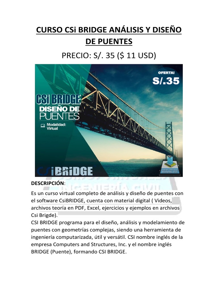 Es un curso virtual completo de análisis y diseño de puentes con
