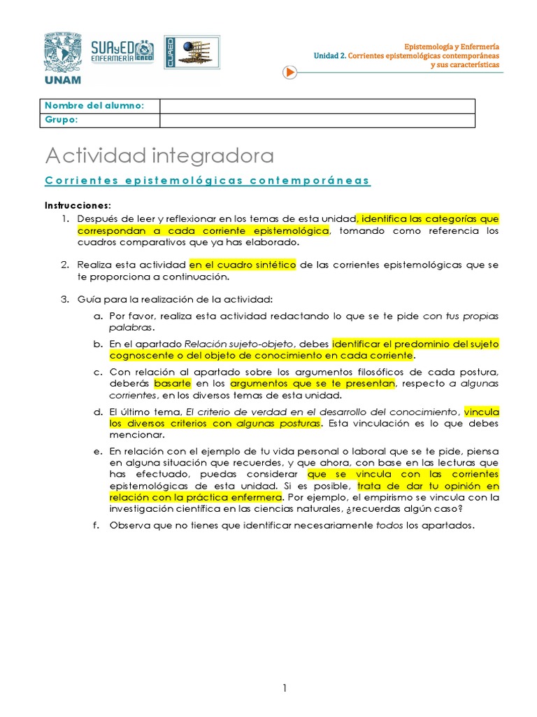 epistemológicas de esta unidad. Si es posible, trata de dar tu opinión en