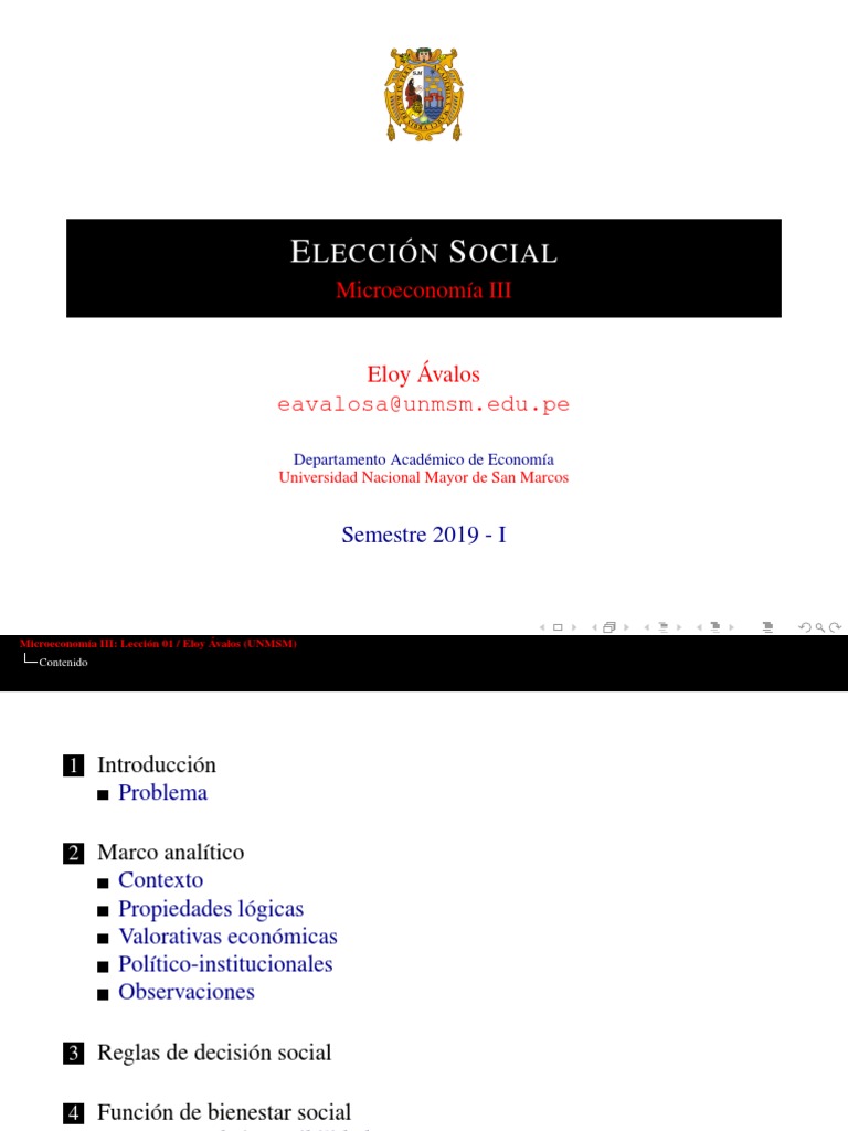 Microeconomía III: Lección 01 / Eloy Ávalos (UNMSM)