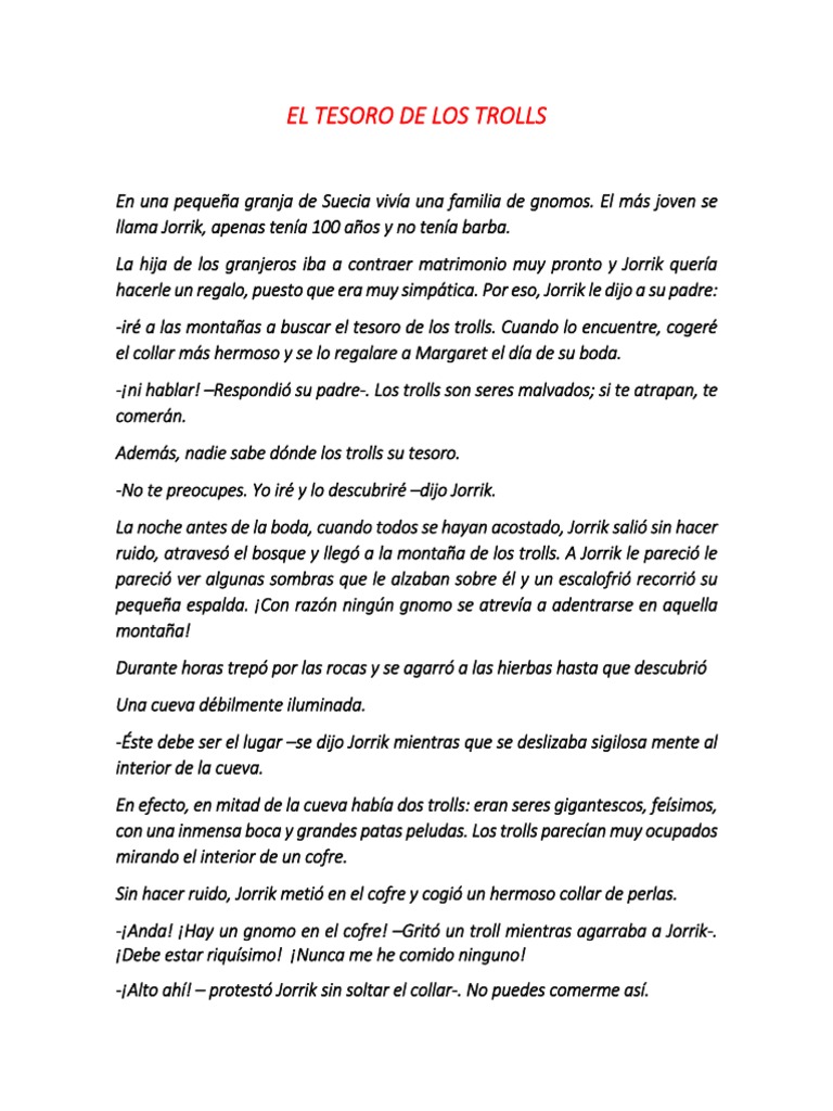 -¡ni hablar! –Respondió su padre-. Los trolls son seres malvados; si te atrapan, te