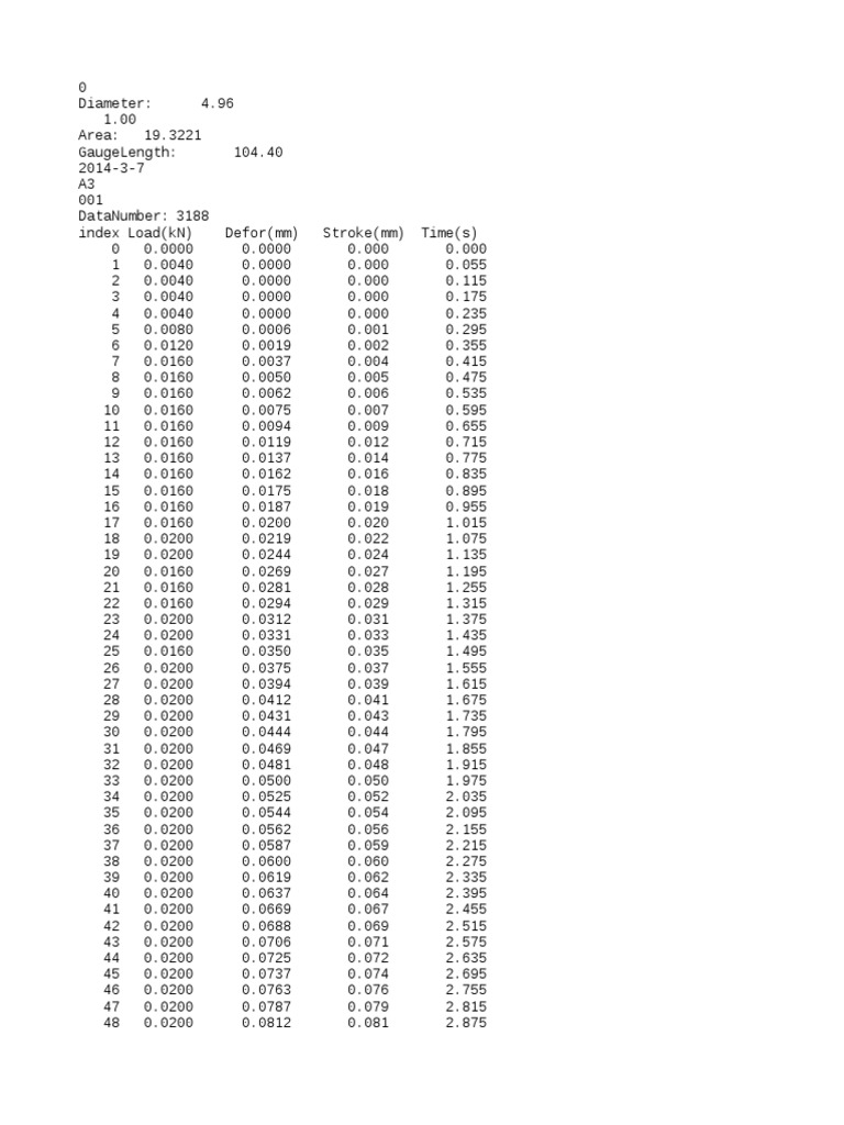 index Load(kN) Defor(mm) Stroke(mm) Time(s)