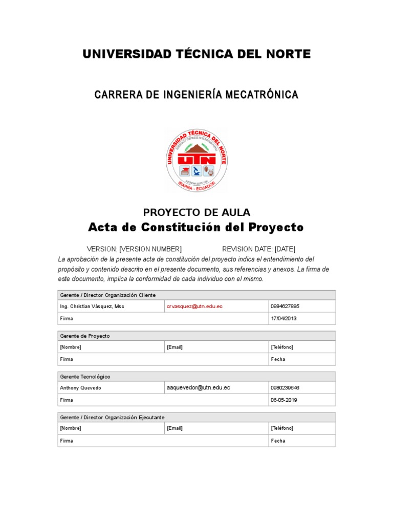 Acta de Constitución del Proyecto