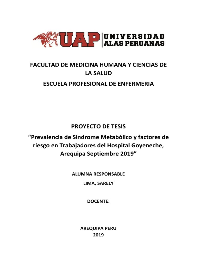 metabólico en colaboradores del Hospital Goyeneche de Arequipa