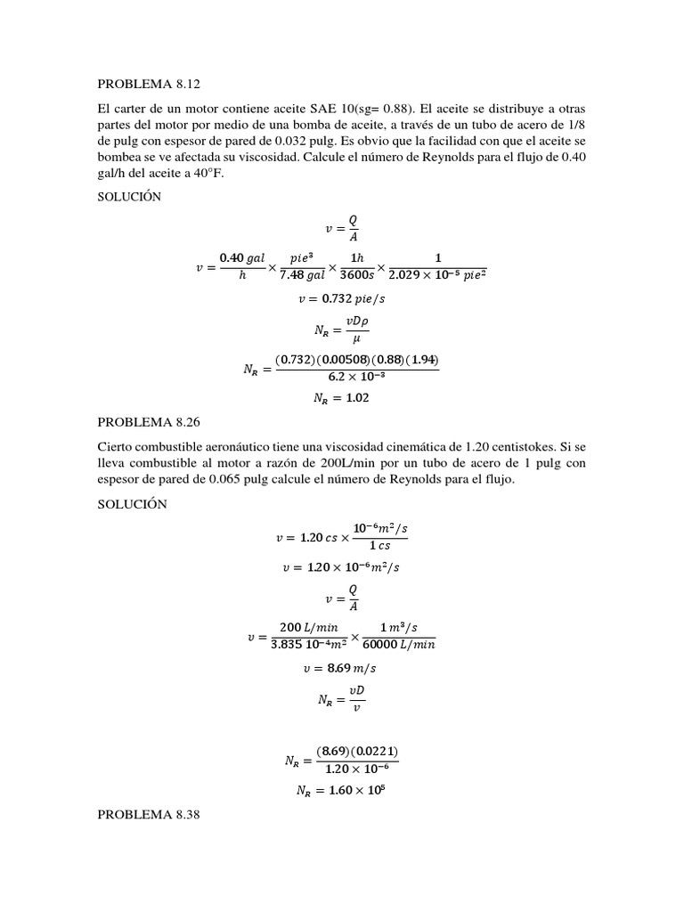 bombea se ve afectada su viscosidad. Calcule el número de Reynolds para el flujo de 0.40