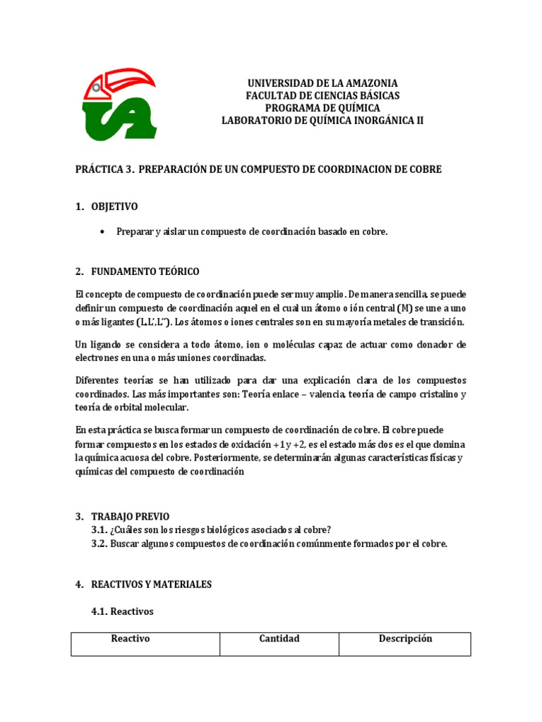PRÁCTICA 3. PREPARACIÓN DE UN COMPUESTO DE COORDINACION DE COBRE