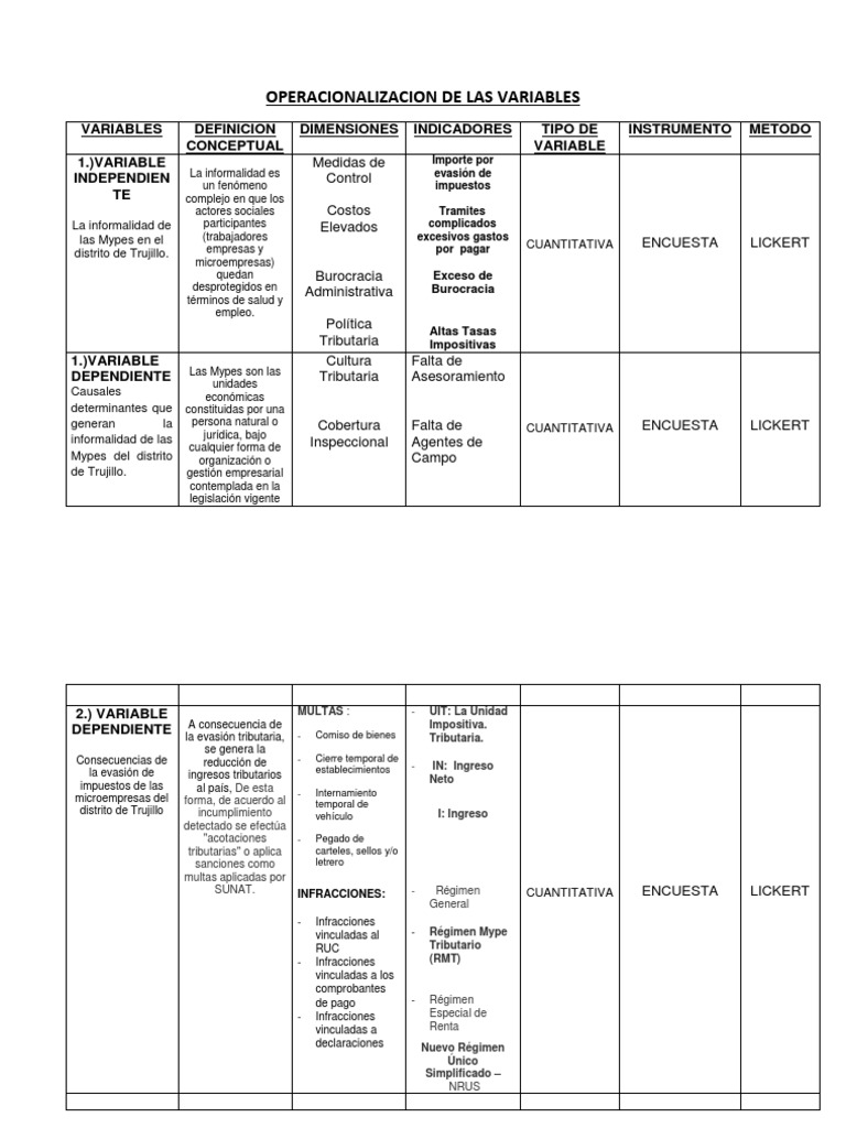 VARIABLES DEFINICION DIMENSIONES INDICADORES TIPO DE INSTRUMENTO METODO