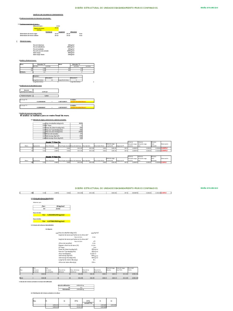 DISEÑO ESTRUCTURAL DE UNIDADES BASANEAMIENTO-MUROS CONFINADOS. NORMA [Link]-2106