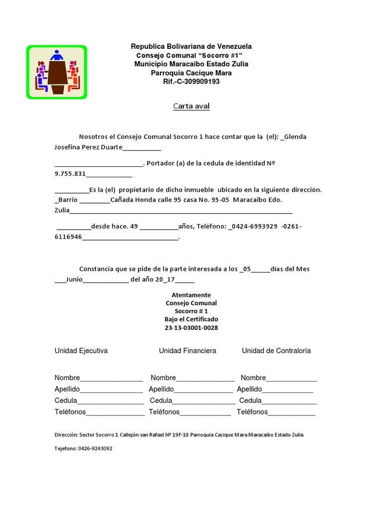 Nosotros el Consejo Comunal Socorro 1 hace contar que la (el): _Glenda