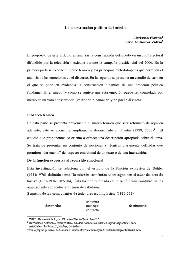 El propósito de este artículo es analizar la construcción del miedo en un spot electoral