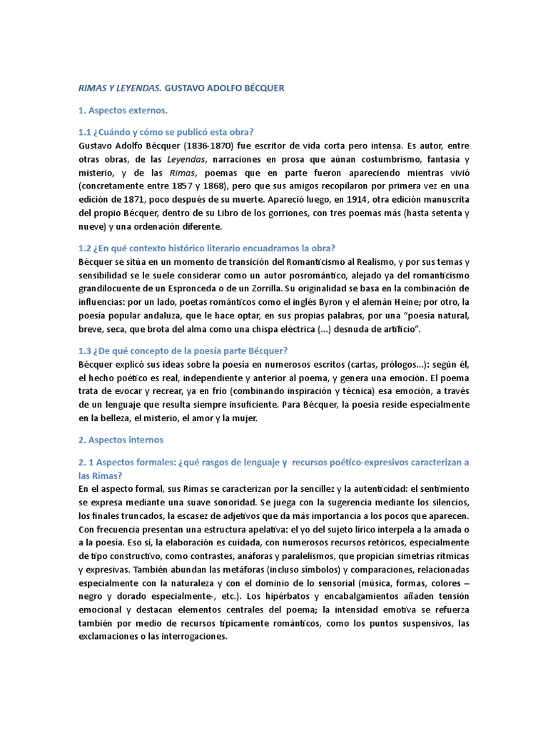 • Finalmente, en las Leyendas se plasman los grandes temas de Bécquer: la lucha entre