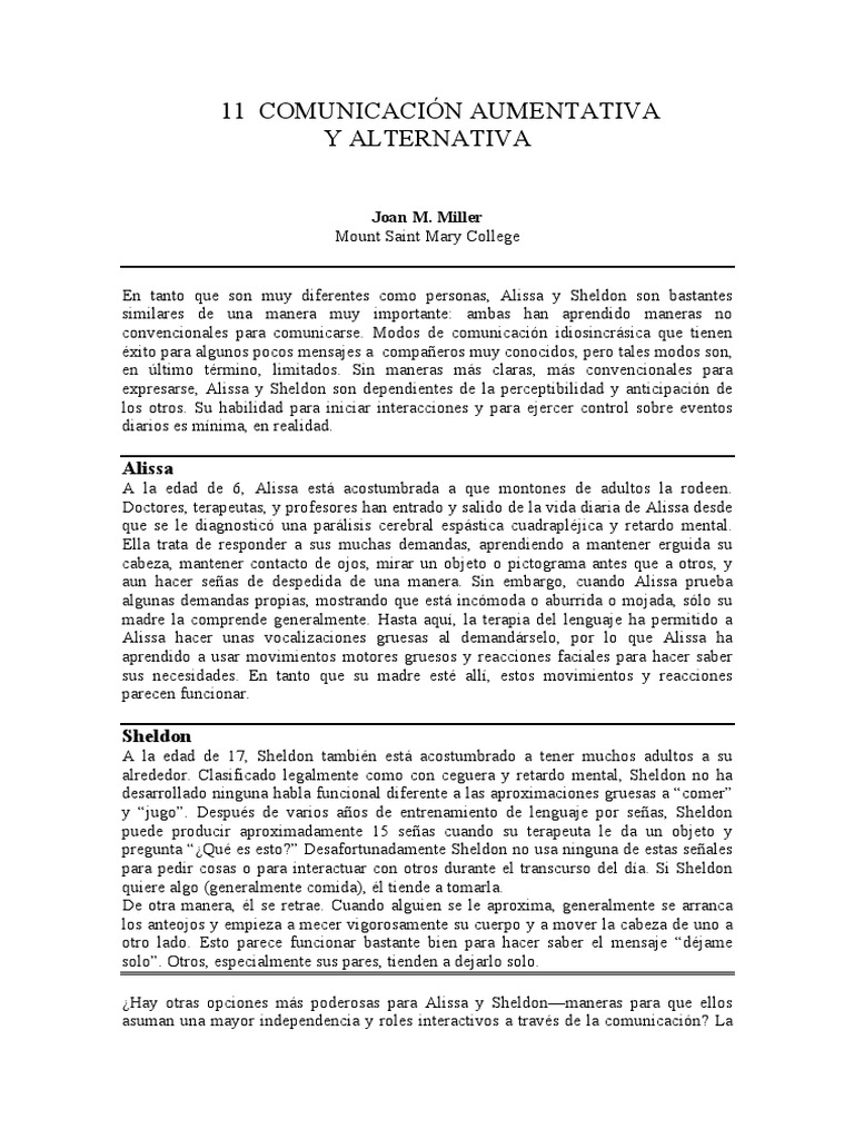 Miller, J., & Allaire, J. (1987).Comunicación aumentativa. En M. E. Snell
