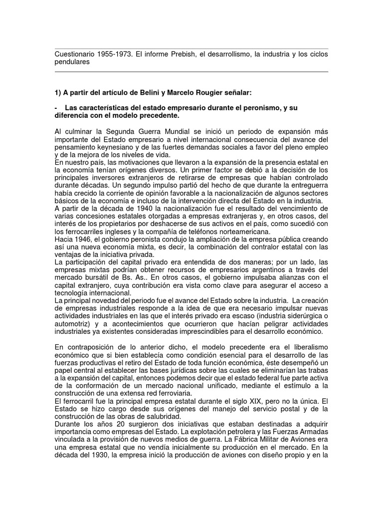 1) A partir del artículo de Belini y Marcelo Rougier señalar: