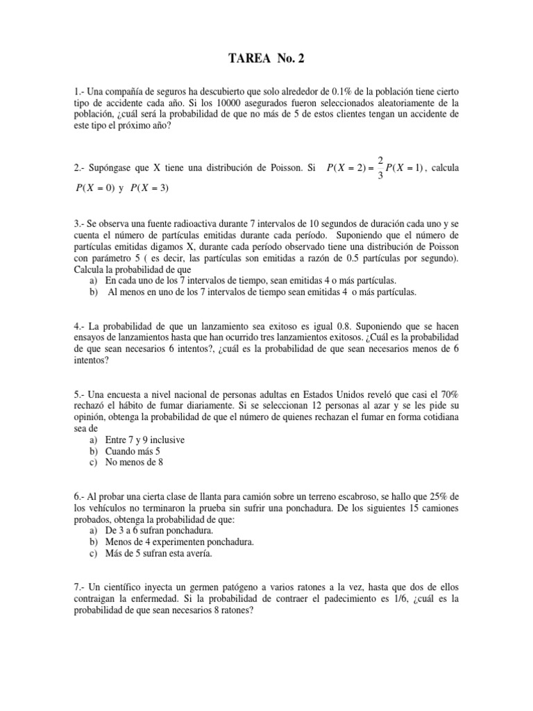 2.- Supóngase que X tiene una distribución de Poisson. Si P( X 2) P( X 1) , calcula