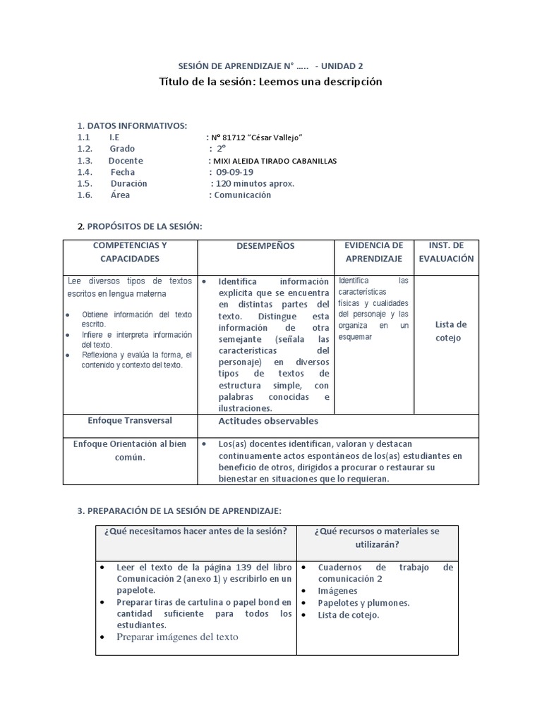 Título de la sesión: Leemos una descripción