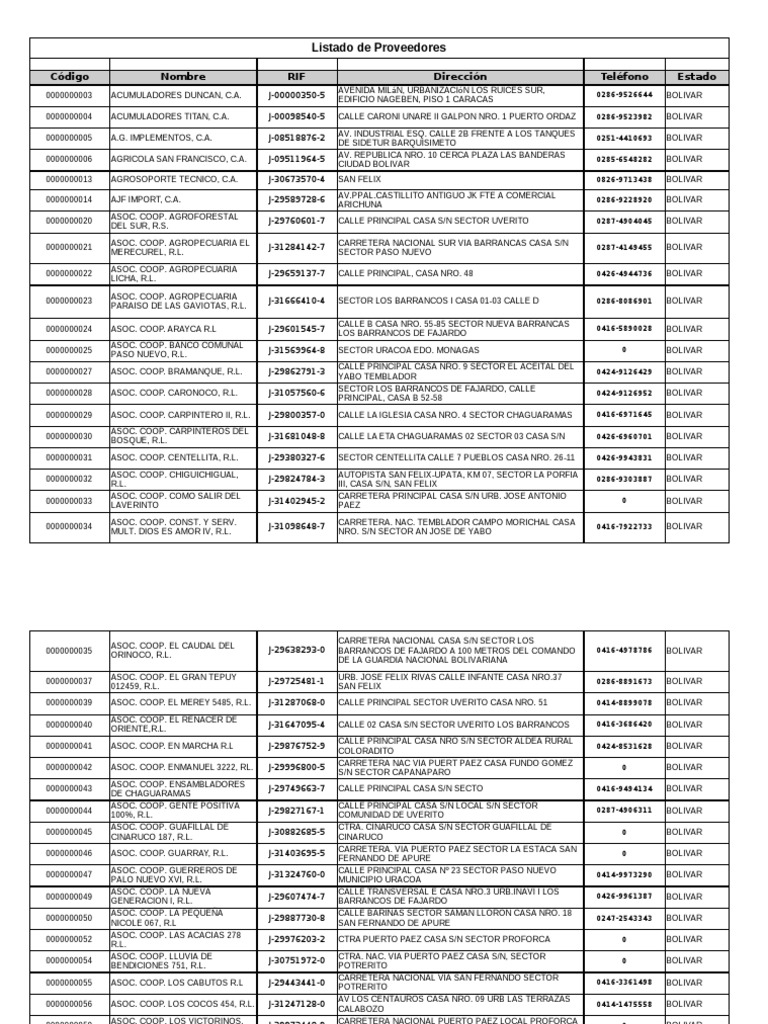0000000093 COOPERATIVA LA PELVA 829, R.L. J-29508199-5 CTRA. PPAL. CASA NRO. 25 SECTOR LAS DELICIAS 024-75115685 BOLIVAR