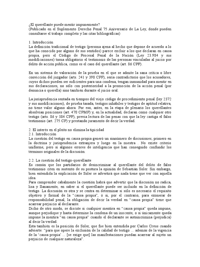delito de falso testimonio”, Abeledo Perrot, Buenos Aires, 1963; mismo autor en la voz