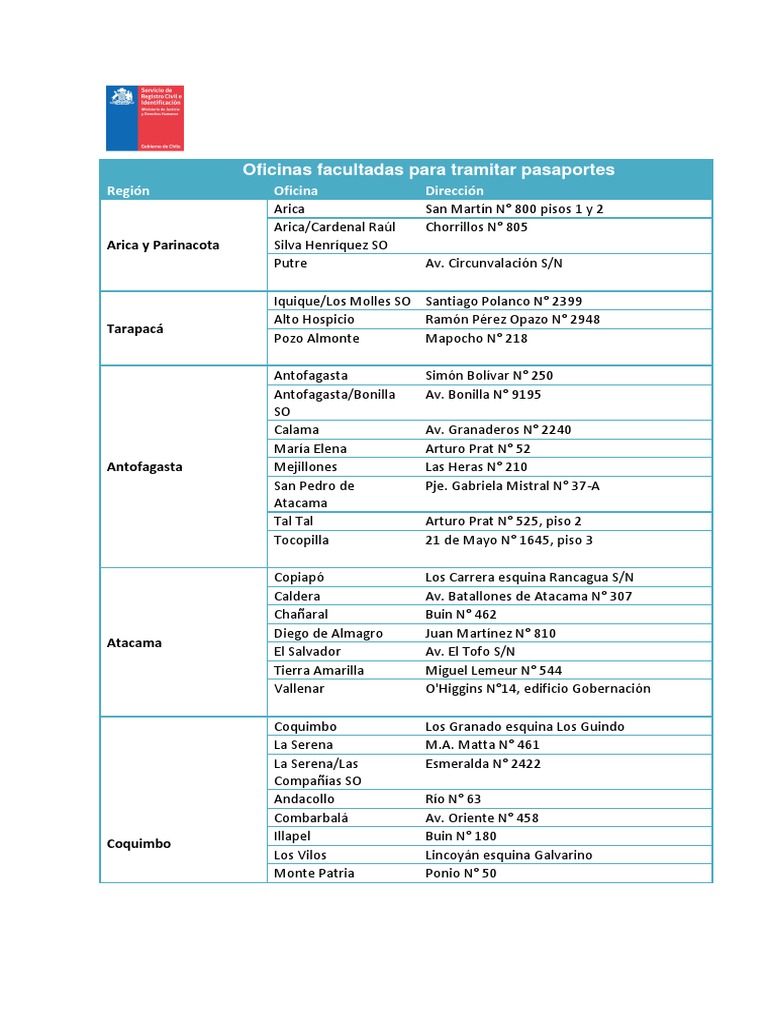 Oficinas facultadas para tramitar pasaportes