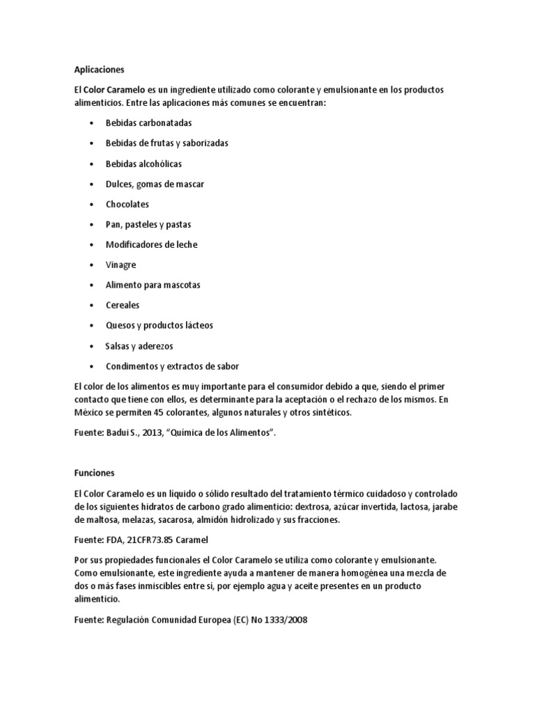 fabricación de los Colores Caramelo Clase III y IV, los cuales son usados con mayor frecuencia para