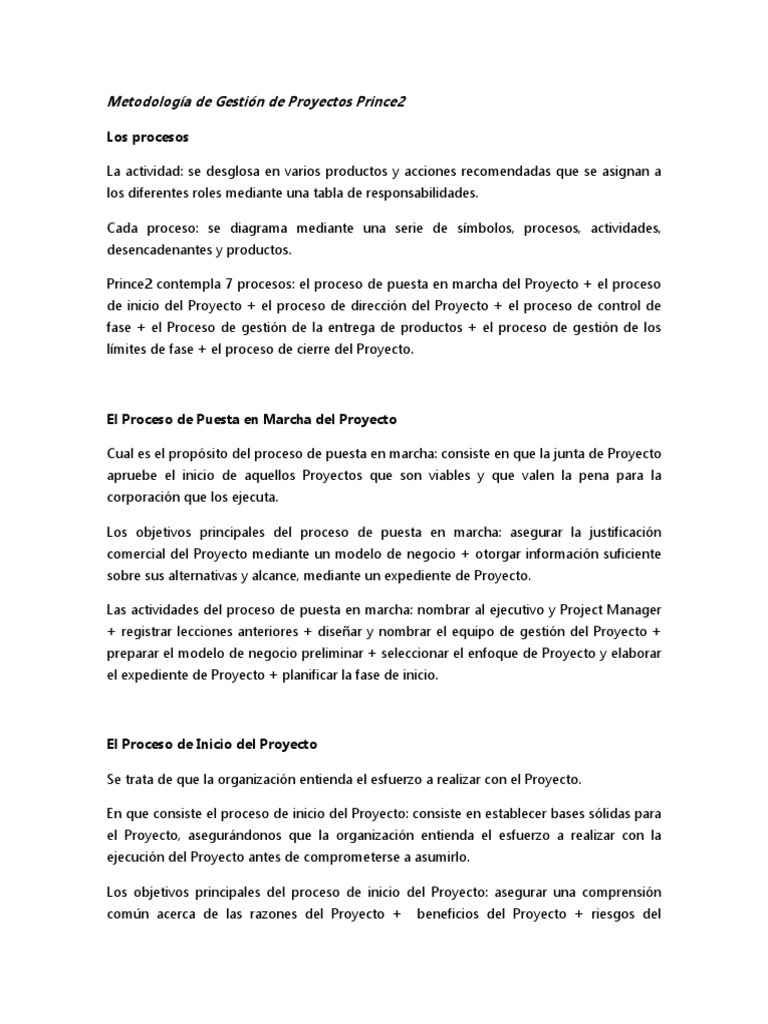Prince2 contempla 7 procesos: el proceso de puesta en marcha del Proyecto + el proceso
