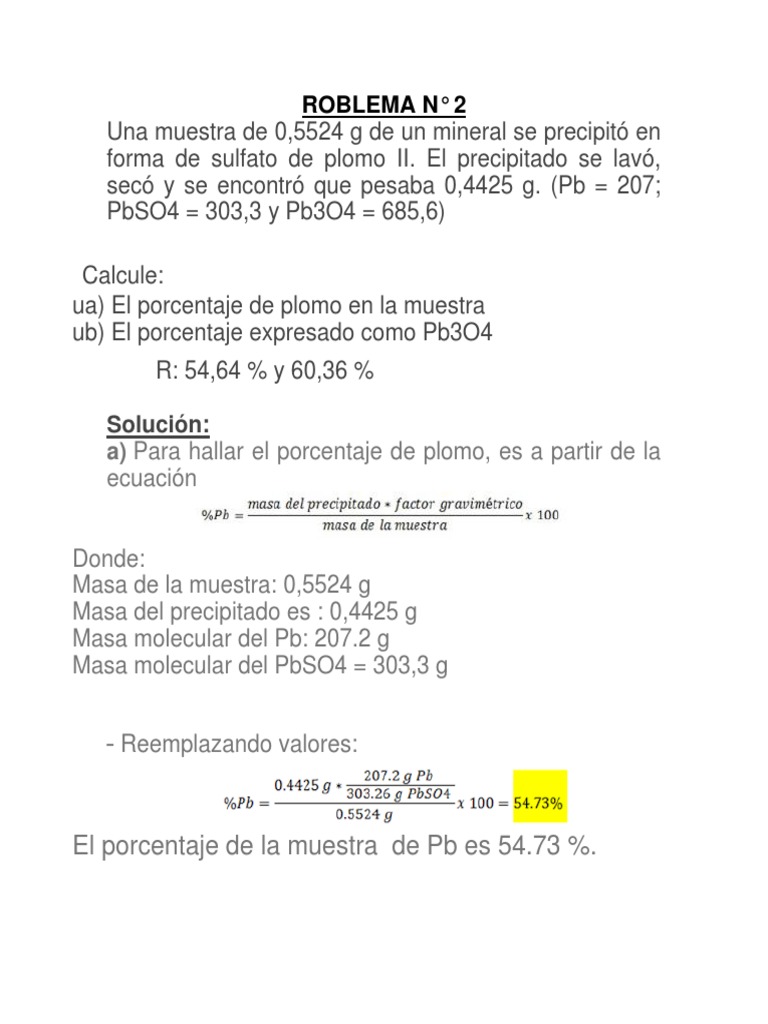 secó y se encontró que pesaba 0,4425 g. (Pb = 207;