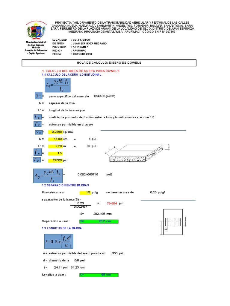 1. CALCULO DEL AREA DE ACERO PARA DOWELS