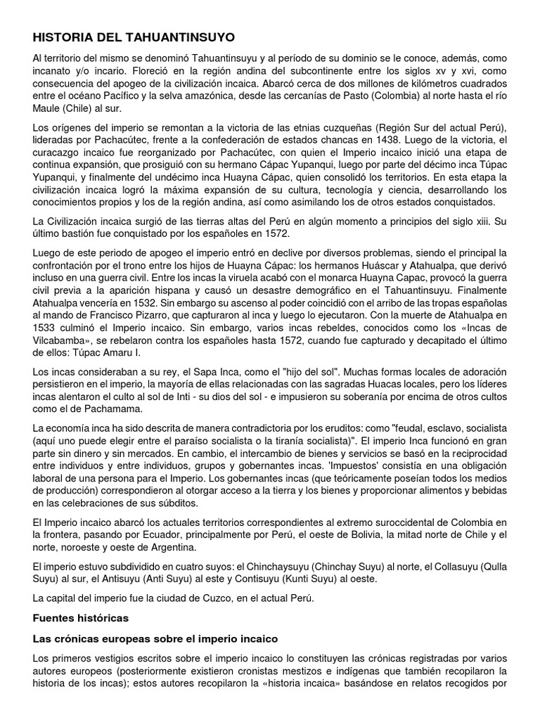 Sobre las crónicas del imperio incaico, es importante acotar que sus diversos autores tuvieron ciertos