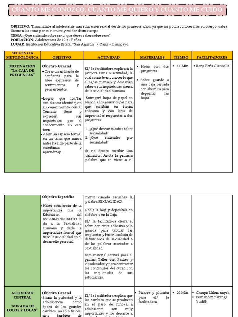 TEMA: Educación sexual.