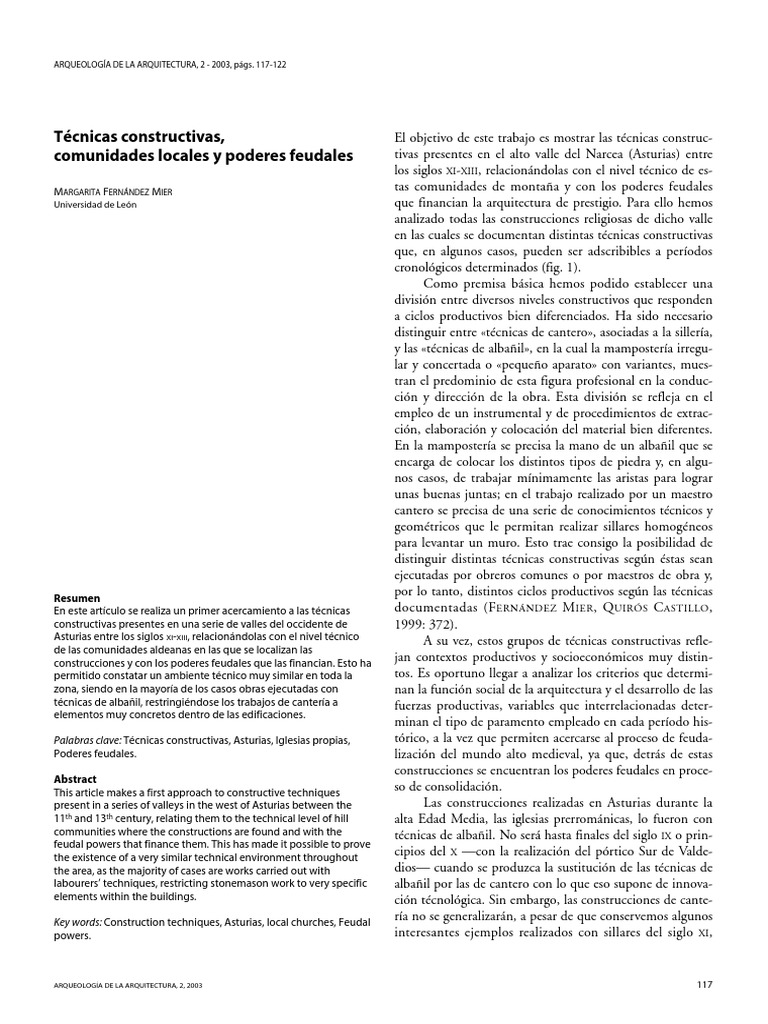 ARQUEOLOGÍA DE LA ARQUITECTURA, 2, 2003 117