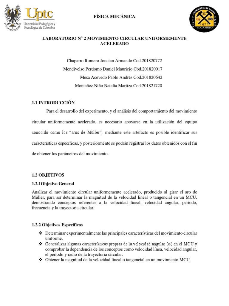 Müller, para así determinar la magnitud de la velocidad lineal o tangencial en un MCU,