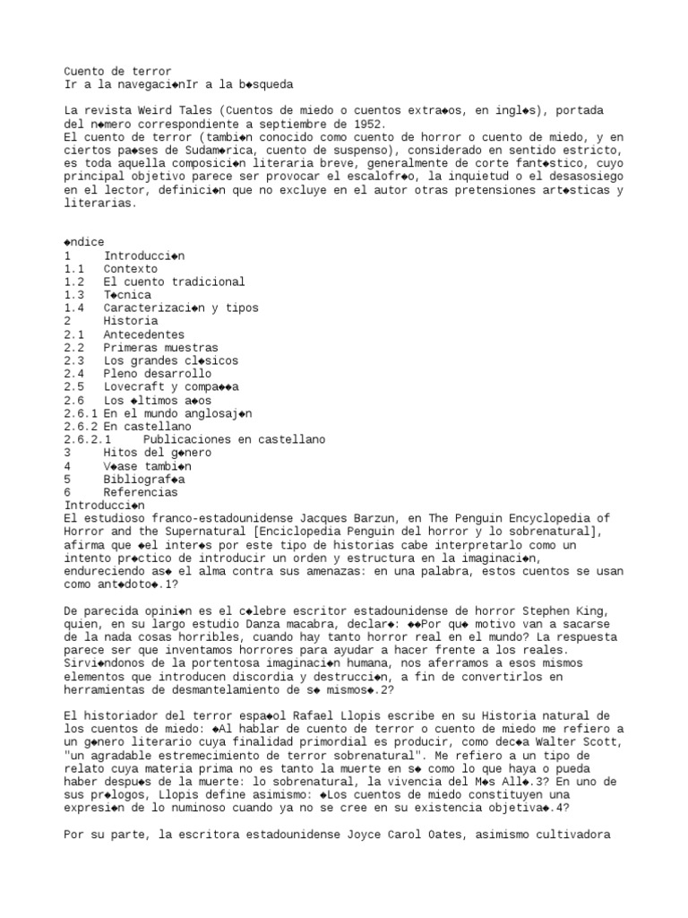 El cuento de terror (tambi�n conocido como cuento de horror o cuento de miedo, y en