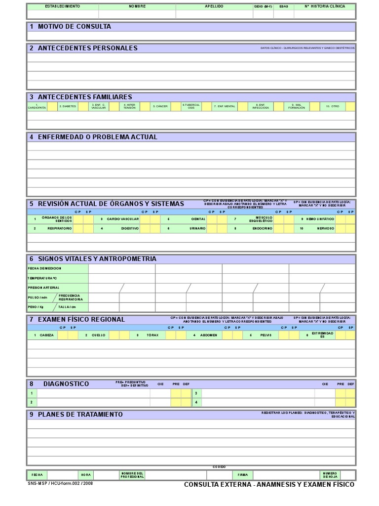 SNS-MSP / HCU-form.002 / 2008 CONSULTA EXTERNA - ANAMNESIS Y EXAMEN FÍSICO