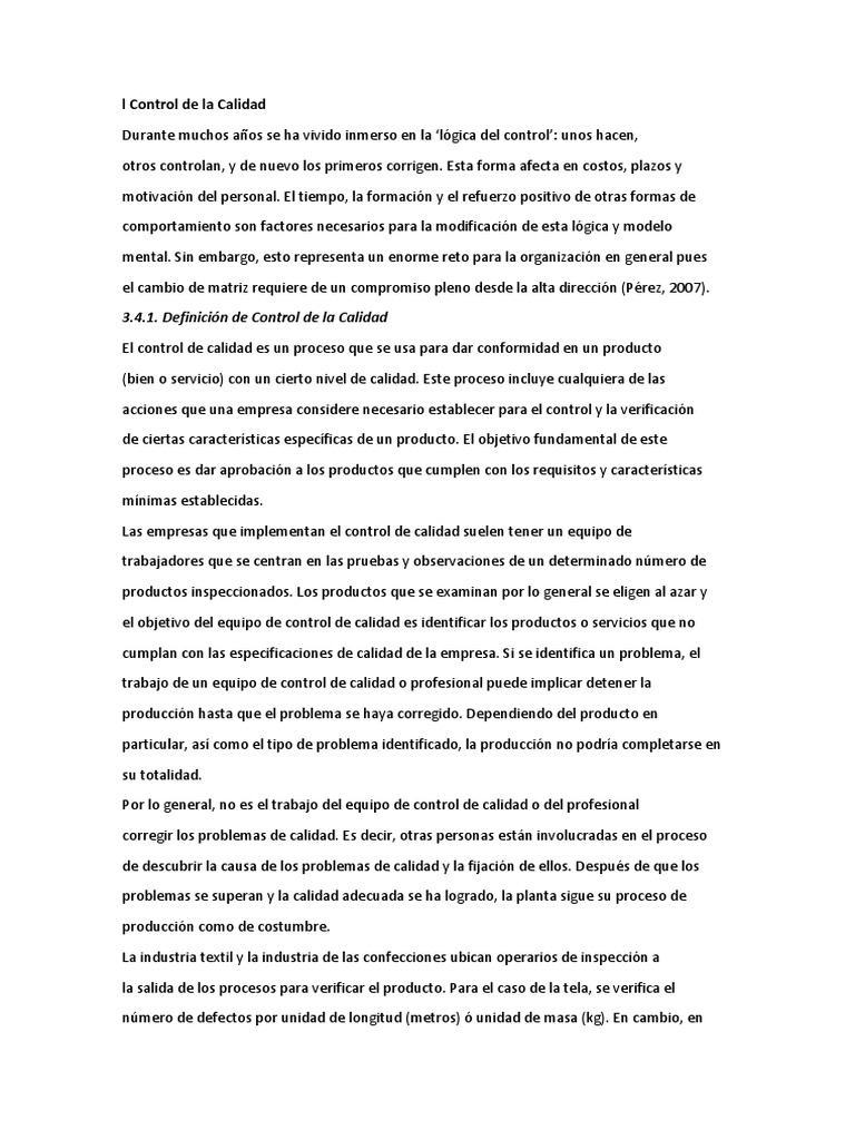 L Control de La Calidad Textil