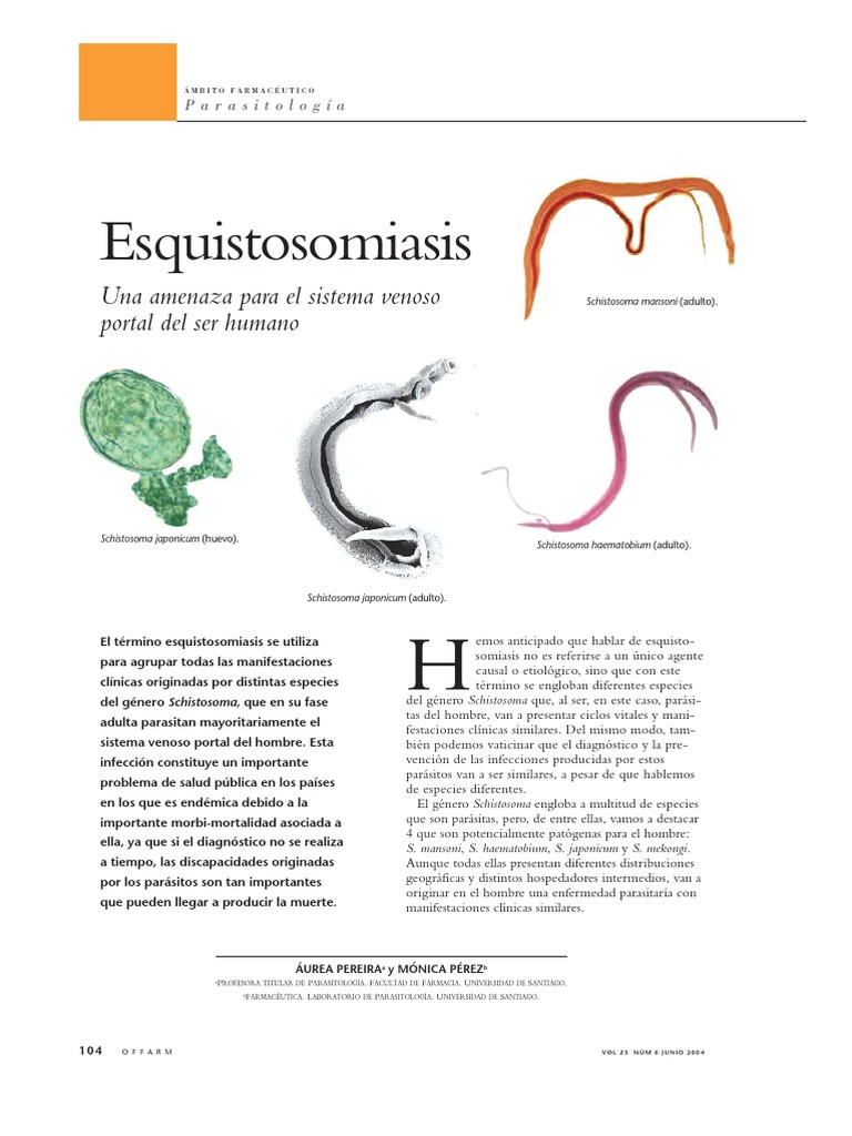 del género Schistosoma, que en su fase del género Schistosoma que, al ser, en este caso, parási-
