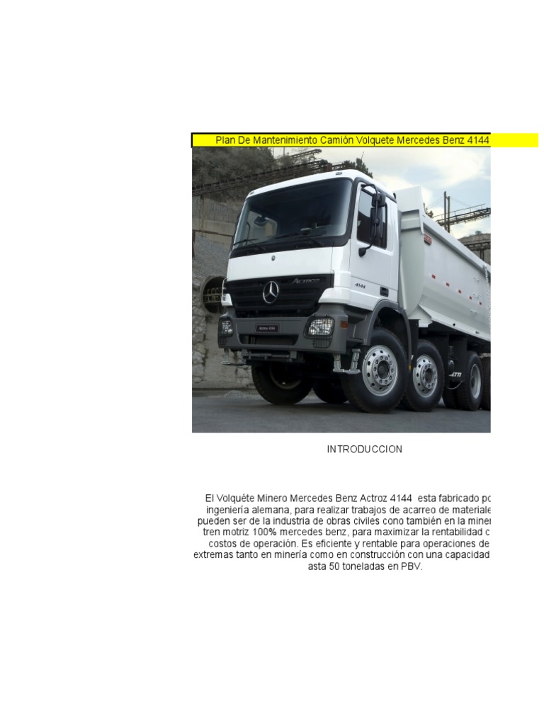 Plan De Mantenimiento Camión Volquete Mercedes Benz 4144 (8x4)