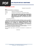 CAP. 7588 ha cumplido con la prestación como Supervisor de Obra, del proyecto: