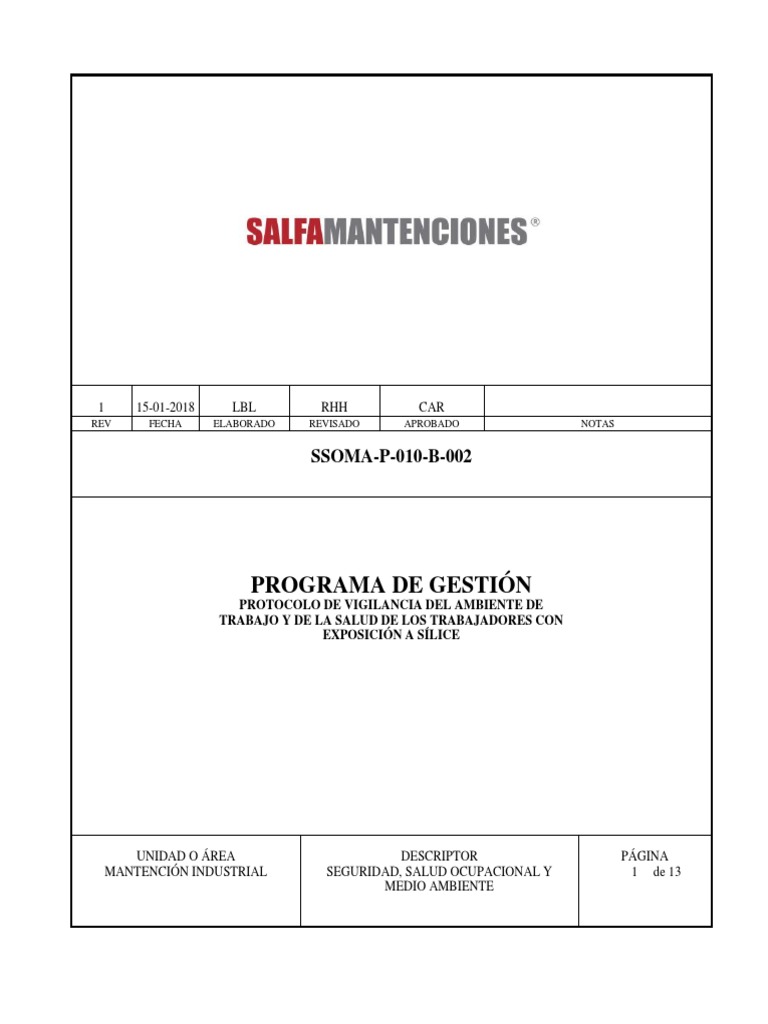 Salfa Mantenciones llevará un registro actualizado de todas las resoluciones de incapacidad por silicosis en sus