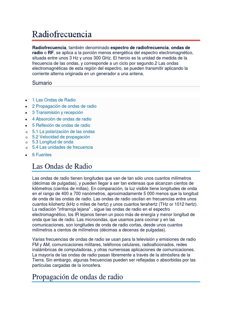 propagación de las ondas de radio. Las ondas de radio (se abrevia RF por Radio